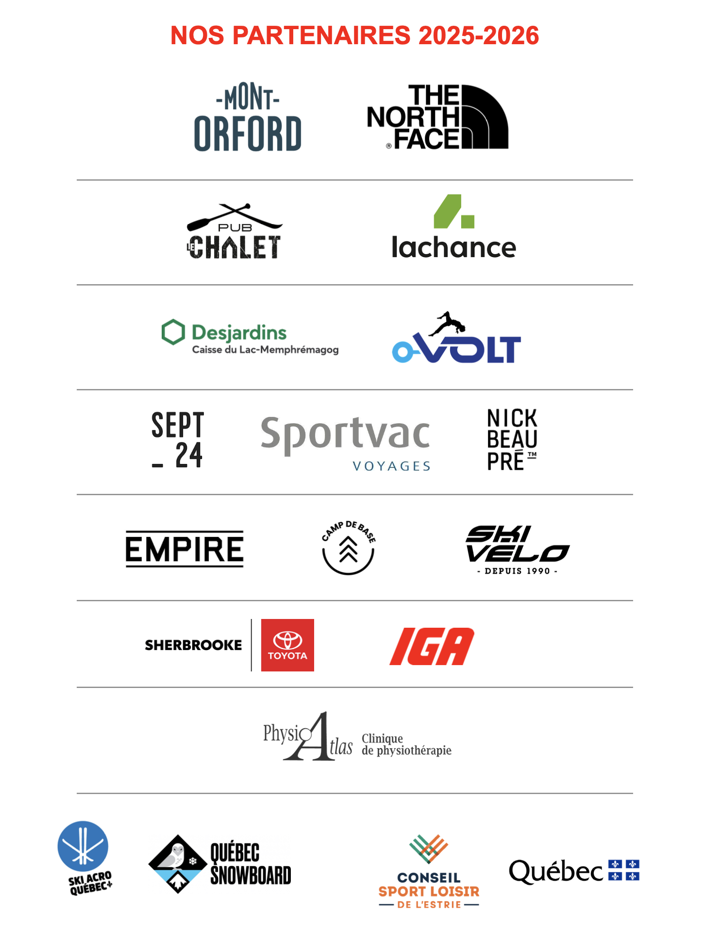 Nous visons une relation gagnant – gagnant avec nos partenaires d’affaires. Vous serez omniprésents lors de nos activités, et ce tout au long de la saison.